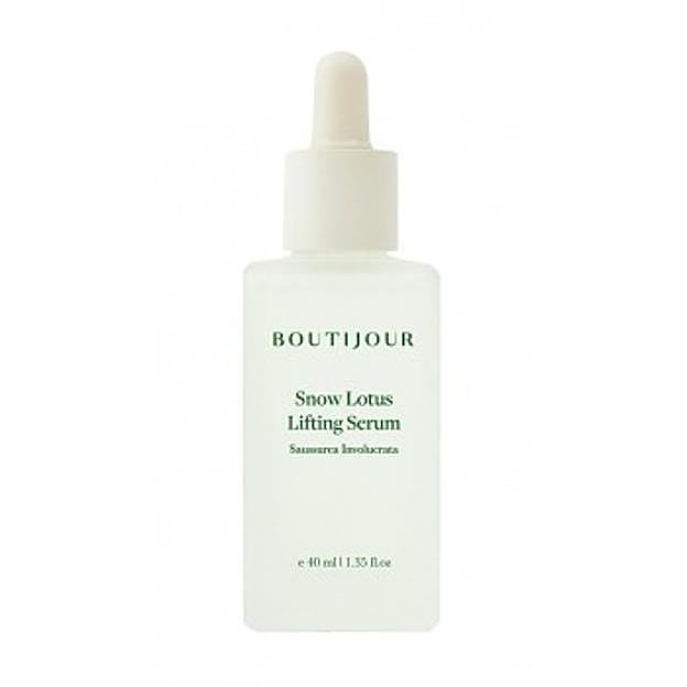 Snow Lotus Lifting Serum de Boutijour. Este tratamiento es antioxidante, hidrata, da luminosidad, calma la piel y con efecto lifting. Deja en la piel un acabado glass-skin con un halo de vitalidad precioso. tiene toda la potencia y capacidad antioxidante del extracto de loto de nieve, que florece en blanco a través del frío extremo y la tierra salvaje del Himalaya. Este activo mejora la resistencia y la elasticidad de la piel, neutraliza los radicales libres dañinos y protege las células de la piel. Precio: 69 euros.
