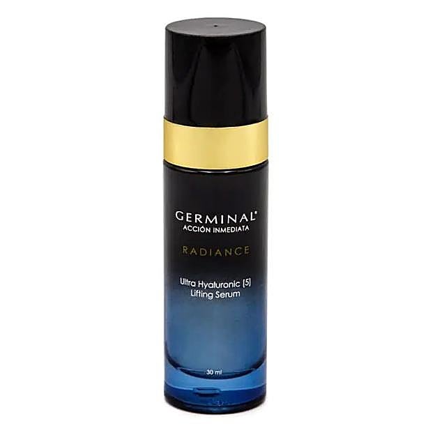 Ultra Hyaluronic 5 Lifting Serum de Germinal. Contiene cinco tipos de Ácido Hialurónico de distinto peso molecular inspirados en los últimos avances científicos, que actúan en los diferentes niveles de la piel. Lleva hidrolizado de proteínas de trigo para un efecto tensor, que actúa sobre la capa córnea para una sensación de lifting inmediato y una combinación de extractos vegetales para un efecto vitalizador, que aportan hidratación, firmeza y elasticidad, mejorando el aspecto de la piel. Precio: 50 euros.