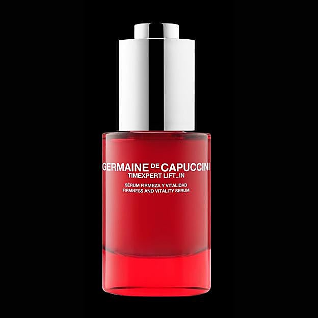 Sérum de Timexpert Lift_IN de Germaine de Capuccini. Sus principales componentes son el Ácido Hialurónico de Alto Peso Molecular, para hidratar profundamente y prevenir la pérdida transepidérmica de agua, el alga Roja de Bretaña y Ceramidas Naturales, que junto con el Nanopolímero HLG Patentado, logran renovar la firmeza y elasticidad de la piel, redefiniendo el aspecto del óvalo notablemente. Renueva la firmeza y elasticidad de la piel, unificando el tono y reduciendo la visibilidad de los poros y consigue un efecto lifting visible desde la primera aplicación. Precio: 120 euros.