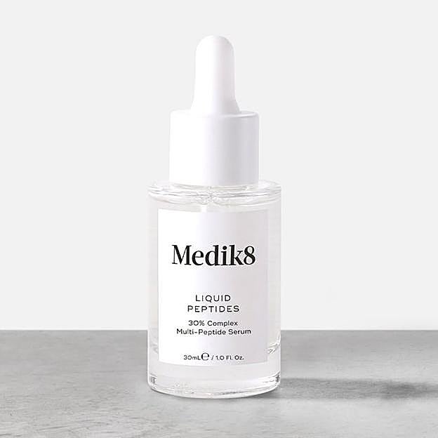 Liquid Peptides de Medik8.Este sérum multipéptido, ideal para pieles que buscan una hidratación profunda y frenar los signos de la edad, utiliza Argirelox para reducir la aparición de nuevas arrugas al inhibir la contracción muscular. Su fórmula avanzada incluye péptidos de penetración celular y Matrixyl 3000, que estimulan la producción de colágeno, reafirmando y rellenando la piel. Es el tratamiento completo para una piel visiblemente más joven y firme. Precio: 73 euros.