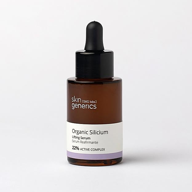 Serum Reafirmante Silicio Orgánico de Skin Generics. Un suero rico en hibisco para mejorar los niveles de hidratación de la piel. Cuenta con silicio, un ingrediente esencial para reafirmar el tejido y reducir los signos de la edad. Además, ofrecerá poder antioxidante contra los radicales libres. Se completa con fosfolípidos tensores y algas hawaianas para completar el poder humectante. Precio: 27,95 euros.