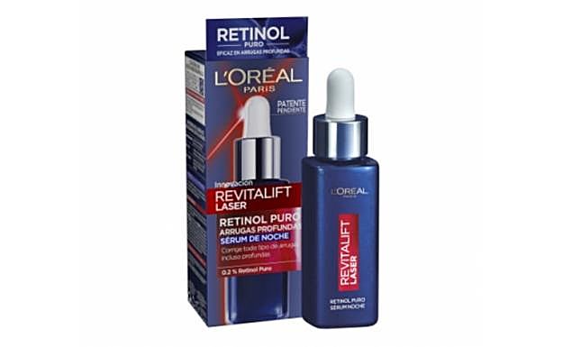 El Sérum Noche con Retinol Puro de L'oréal Paris corrige todo tipo de arrugas, incluso las más profundas. Inmediatamente, la piel está más hidratada, flexible y se ve más lisa. Tras un mes de uso, la textura de la piel se refina, se ve más joven y más luminosa. Tu piel necesitará tiempo para acostumbrarse a este poderoso ingrediente, por ello es importante empezar a utilizarlo gradualmente. Aplicar 3-4 gotas sobre el rostro limpio y seco por la noche antes de la crema hidratante. Disponible en Douglas por 16,99 euros.