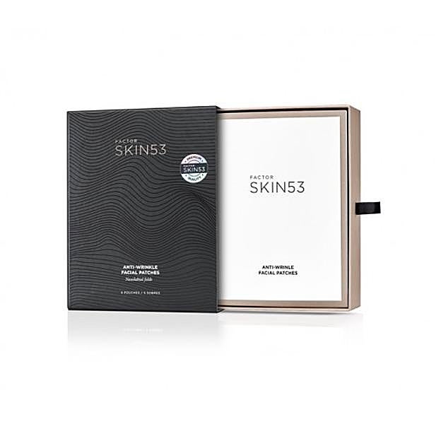 Parches formados por ácido hialurónico y EGF (factor de crecimiento epidérmico en sus siglas inglesas), que incrementa la proliferación de células epidérmicas y la producción de colágeno, ácido hialurónico, elastina y otros componentes esenciales de la piel, disminuye las arrugas y, finalmente, inhibe y previene la rotura celular. Los mejores resultados se obtienen si los llevas puestos durante toda la noche, tanto en el contorno de los ojos como en la zona de los labios. Precio: 89 euros en la web de Factor Skin 53.
