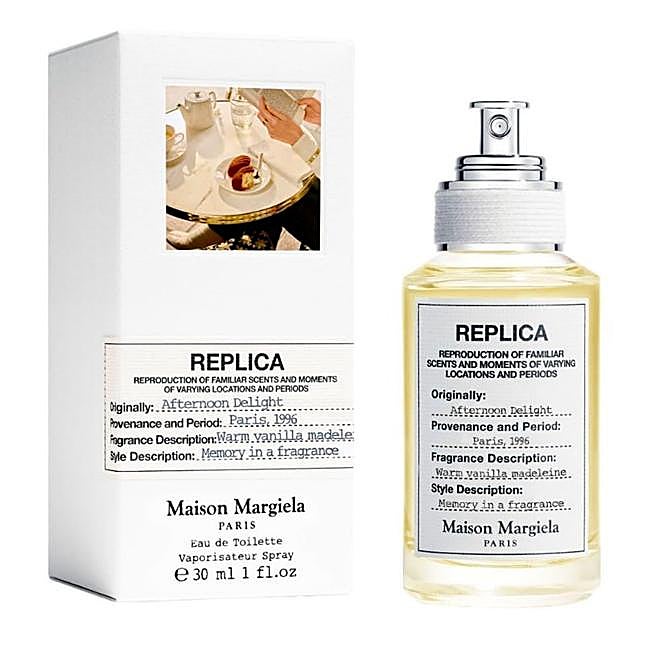 Afternoon Delight de Maison Margiela, captura la esencia de una tarde cálida y pausada en una elegante pastelería parisina de 1996. combina la cremosidad envolvente de la vainilla de Madagascar con el carácter cálido del sándalo de Nueva Caledonia. Las notas de corazón revelan un delicado acorde de madeleines, acompañado por el frescor de la raíz de zanahoria y la sutileza del absoluto de ambreta. El toque inicial de almendra amarga y angélica aporta una chispa. Precio: 78 euros.