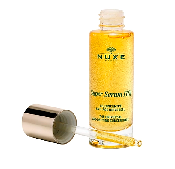 Se trata del tratamiento más novedoso y avanzado en el campo del cuidado facial. NUXE Super Sérum ataca directamente los signos de la edad mediante una fórmula exclusiva que mezcla el ácido hialurónico con el poder regenerativo de las microesferas de aceites botánicos. Las células nativas de Edelweiss intensifican la tersura del rostro con un efecto de estímulo rejuvenecedor de eficacia probada.