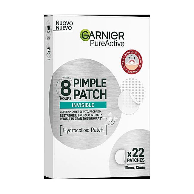 Pimple Patches de Garnier. Si no te gusta lo de llevar colores y formas y divertidas en la cara, prueba con estos parches invisibles que ayudan a reducir los granos maduros en tan solo 8 horas. Gracias a su tecnología hidrocoloide, crean un entorno protector que absorbe el exceso de sebo y reduce visiblemente las imperfecciones. Su diseño ultra fino y transparente se adapta a todos los tonos de piel y es compatible con el maquillaje. Precio: 8,99 euros.