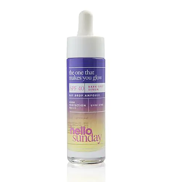 The One That Makes You Glow de Hello Sunday. Protección solar en formato séerum que se ha convertido en un tratamiento invisible que no solo reduce y previene la aparición de manchas oscuras, sino que la niacinamida y el cóctel de vitaminas antioxidantes ayudan a igualar el tono de la piel. Es una fórmula sin perfume y de rápida absorción con protección contra los rayos UVA/UVB, la contaminación y la luz azul. ¿Listo para brillar? Precio: 28 euros.
