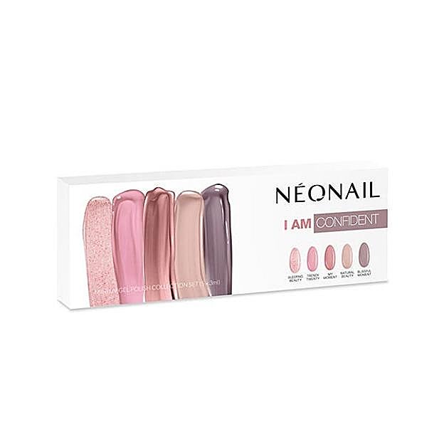 Collection Set - I Am Confident de Neonail es un kit en el que podrá encontrar tonos nude y tonos rosa pastel. Contiene 5 esmaltes semipermanentes beis y rosas de varias tonalidades, por lo que es ideal para realizar una manicura nude y también como base para hacer decoraciones de uñas.