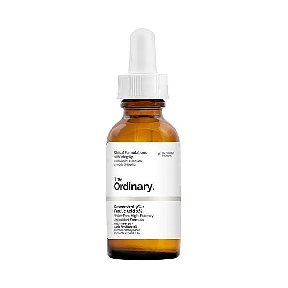 Gracias a sus funciones antioxidantes, Resveratrol 3% + Ácido Ferúlico 3% protege la piel contra los radicales libres y ayuda a mantener la piel saludable. Esta fórmula contiene concentraciones muy elevadas (3%) de los dos antioxidantes más poderosos en el tratamiento de la piel: Resveratrol y Ácido ferúlico. El resveratrol es un polifenol natural que se encuentra en algunas plantas. Él que está presente en esta fórmula proviene a 100% de Renouée de Japón. El ácido ferúlico es un potente antioxidante fitoquímico que se encuentra naturalmente en las células vegetales. Precio: 7,99 euros en Sephora.
