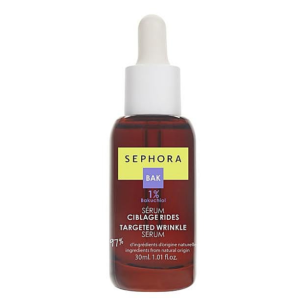 Formulado con un 97 % de ingredientes de origen natural, este sérum de rostro y cuello combate las arrugas y reafirma la piel gracias al bakuchiol, su ingrediente estrella. Precio: 22,99 euros.