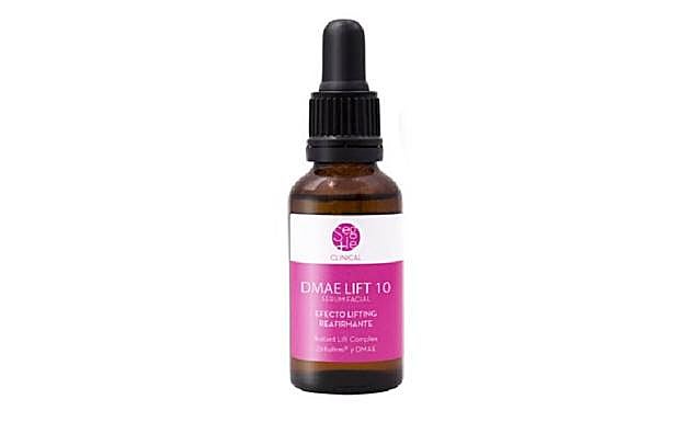 El sérum DMAE Lift 10 de Segle Clinical ofrece un efecto lifting prolongado sobre la piel gracias a sus propiedades reafirmantes que reafirman y proporcionan mayor elasticidad al rostro y cuerpo. Actúa estabilizando la membrana celular y como protector antioxidante frente a la acción de los radicales libre gracias al DMAE, que recupera la elasticidad y flexibilidad de la piel y la Acetilcolina y el Zirhafirm que devuelven la firmeza. Está disponible en PromoFarma por 33,42 euros.