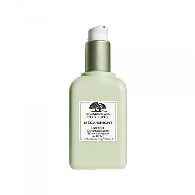 Mega-Bright Dark Spot Correct Serum de Origins. Gracias a su complejo natural de rosa roxburghii, peonía blanca y regaliz, este suero concentrado reduce visiblemente las manchas oscuras y unifica el tono de la piel. Día a día notarás como la luminosidad vuelve a tu rostro para un acabado brillante, sano y sin imperfecciones.