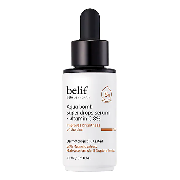 Y uno con vitamina C es lo mejor que puedes hacer. Y entre las opciones favoritas se encuentra Suero Aqua Bomb Super Drops de Belif, un suero de alto rendimiento que consigue despertar la piel cansada y sin brillo en tan solo dos semanas.
