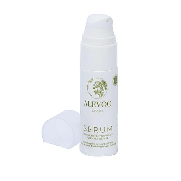 Sérum facial de Alevoo. Su textura fluida penetra en las capas más profundas de la piel para regenerar, hidratar y nutrir. Es rico en antioxidantes naturales y vitamina E, y su fórmula combina aceite de oliva virgen extra con ácido hialurónico para combatir y evitar la aparición de manchas e imperfecciones del rostro de forma eficaz.