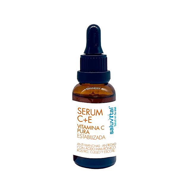 Sérum C+E de Saluvital contiene una combinación de activos de última generación como la vitamina C pura estable, vitaminas de los grupos E, B y alfa hidroxiácidos (AHA), que blanquean la piel inhibiendo el contenido de melanina. Reduce las manchas provocadas por el sol y la edad, unificando el tono de la piel y ayudando a sintetizar de forma natural el colágeno, protegiendo de la oxidación y reduciendo los efectos nocivos de los radicales libres. Gracias a su contenido de aloe vera y ácido hialurónico hidrata en profundidad, mejora la firmeza y elasticidad y proporciona un aspecto uniforme, luminoso y relajado. Precio: 19,50 euros.