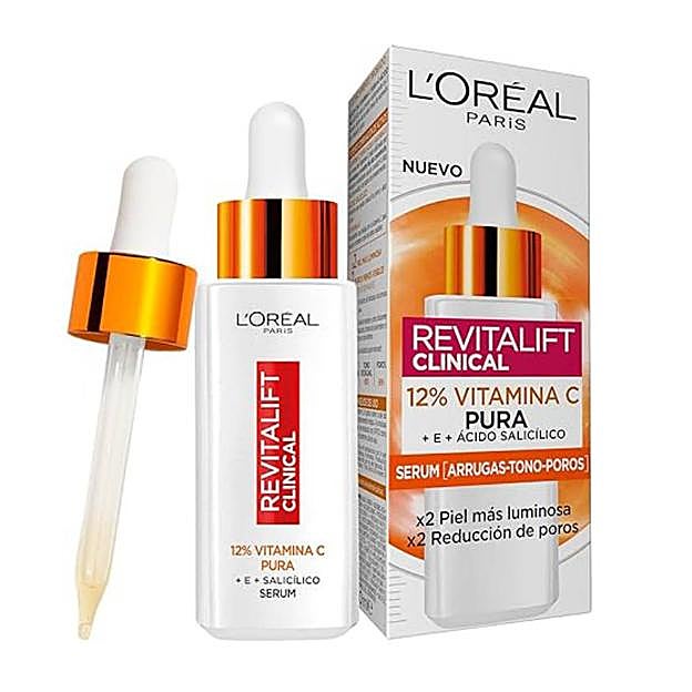 El Sérum Facial 12% Pura Vitamina C Revitalif Clinical de L'Oréal Paris es otra opción de vitamina C low cost pensada especialmente para combatir los primeros signos de envejecimiento como arrugas, manchas o líneas de expresión. Además, este producto ayuda a unificar el tono de la piel y potenciar la la luminosidad del rostro. Su precio es de 16,89€ en Amazon.