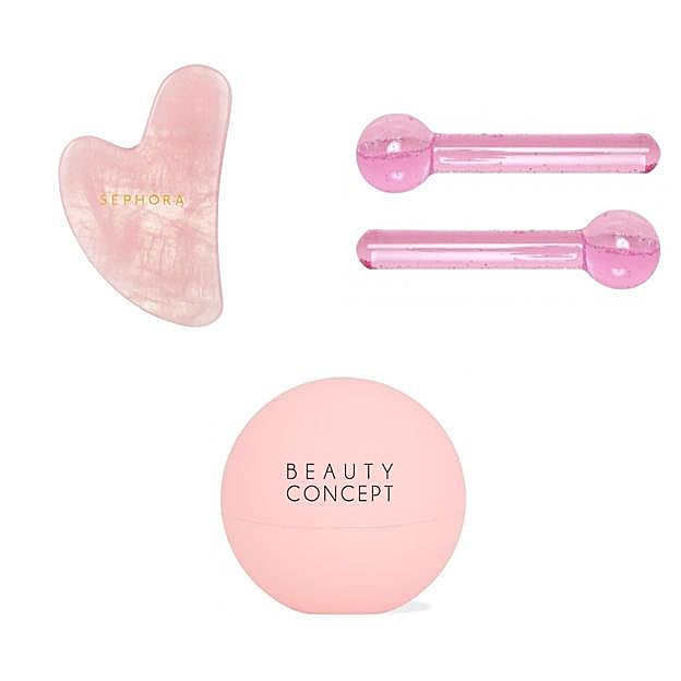 Como sabemos que sumergir la cara en cubitos de hielo, no es nada agradable, aunque esté de moda, si te recomendamos utilizar algunas herramientas para beneficiarse de las propiedades del frío en la piel. Una de ellas, es el clásico Gua Shua (12,99 euros). Este es de Sephora y está fabricado en cuarzo rosa. La otra opción son dos esferas de You Are The Princess (9,99 euros) con las que también podrás realizar masajes faciales en frío. El último, una esfera de silicona (4,99 euros) que podrás rellenar con agua fría y aplicar sobre el rostro. Esta pequeña esfera ayuda a reducir el acné, las ojeras, y consigue minimizar los poros.