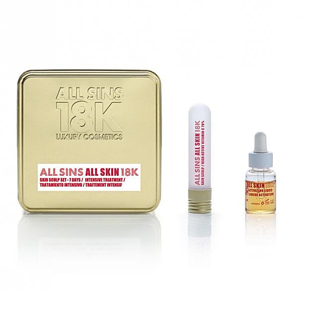 También está Sins Sculp Set 7 Days Intensive Treatment de All Sins 18K (150 euros), un estuche que contiene un lujoso sérum que te garantiza la máxima estabilidad, potencia y penetración en las capas más profundas de la piel y unas cápsulas concentradas 79% vitamina C que luchan contra los signos de la edad.