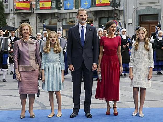 Los Reyes volverán a presidir la entrega de los Premios en compañía de la Princesa de Asturias (aquí puedes recordar el discurso con el que debutó el año pasado), la Infanta Sofía y la Reina Emérita, que reaparece junto a sus nietas un año después pero este año la ceremonia se celebrará en petit comité, con un aforo muy reducido, un formato diferente y en el Hotel Reconquista en vez de en el famoso Teatro Campoamor. El acto tendrá lugar en el Salón Covadonga y solo estarán los premiados y las autoridades, mientras que los patronatos de la institución y familiares de los galardonados seguirán el acto a través de pantallas instaladas en otras salas del hotel. Todo, como ha confirmado la organización, "con el principal objetivo de preservar la salud de las personas y de minimizar el riesgo de contribución a la expansión del virus" y "cumpliendo unas estrictas medidas de seguridad sanitaria".
