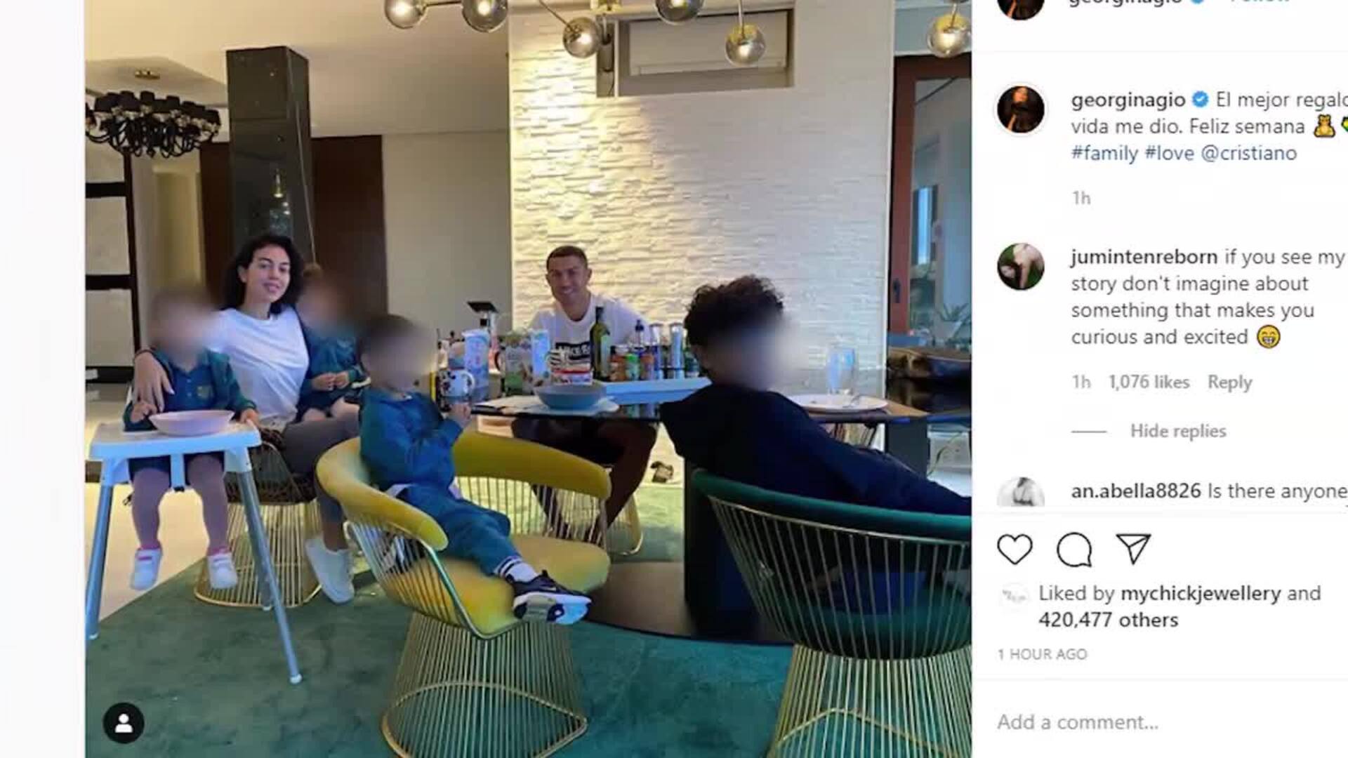 Georgina ha querido empezar el lunes con fuerza y sobre todo mucho amor en sus redes sociales. La influencer ha publicado una tierna foto de la familia al completo para comenzar la semana con buenas sensaciones. En la imagen, vemos a Cristiano, Georgina y los pequeños de la casa ante una suculenta mesa, para desayunar aunque algunos más alegres que otros, y es que los lunes por la mañana agotan a cualquiera.(Fuente: EP e Instagram)