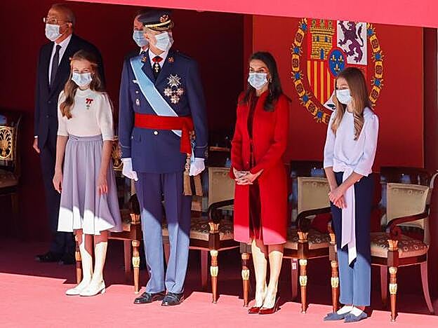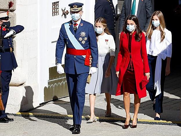 Como ya anunció el Ministerio de Defensa en el mes de julio, debido a la pandemia del coronavirus y como medida de seguridad para evitar agomeraciones, este 12 de octubre no se ha celebrado el tradicional desfile militar con motivo del Día de la Hispanidad. En su lugar, ha tenido lugar un acto mucho más sencillo en el patio de la armería del Palacio Real, con una pequeña representación del Gobierno y los diferentes ejércitos, pero también presidido por los Reyes, que han acudido acompañados por sus dos hijas, la Princesa Leonor y la infanta Sofía, como viene siendo habitual en sus últimas apariciones públicas.