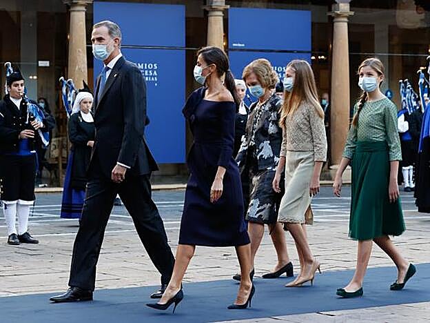 Antes de que los Reyes y sus hijas aparecieran puntuales ante las cámaras a las 18.30 horas de este viernes 16 de octubre en el Patio de la Reina del Hotel Reconquista, nosotras nos preguntábamos qué podíamos esperar del look de la Reina en esta extraña edición de los Premios Princesa de Asturias. Este acto siempre había sido, junto con el Día de la Hispanidad, las dos fechas clave en el calendario ‘sartorial’ de doña Letizia desde 2004. Y también los dos actos en los que las ‘watchers’ de la Casa Real teníamos claro qué iba a llevar: cada año, un vestido nuevo firmado por Felipe Varela. Pero esta vez, ni una cosa, ni la otra.