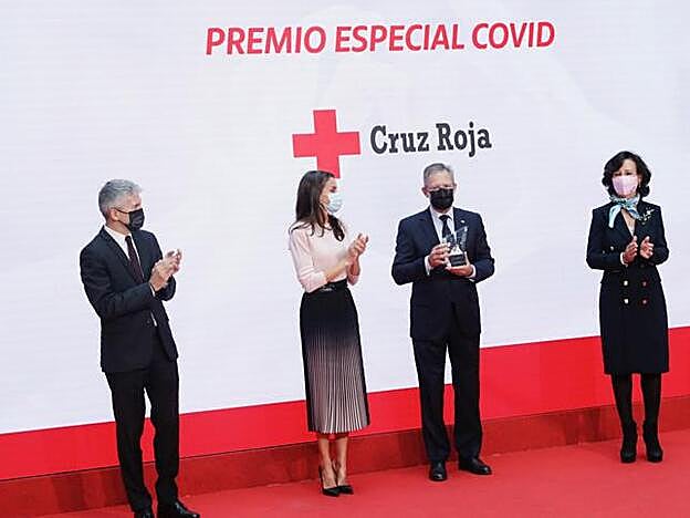 La Reina, que participó en el acto organizado por la Cruz Roja y el Banco Santander en un Madrid gris y lluvioso, decidió ponerle color al día combinando (con gran acierto) su falda híper favorecedora con un sencillo suéter de punto rosa empolvado y uno de nuestros abrigos favoritos, un diseño en el mismo tono de Carolina Herrera que es híper femenino y romántico. ¿El último detalle perfecto de este look de la Reina? Sus salones efecto piel de cocodrilo de Manolo Blahnik.