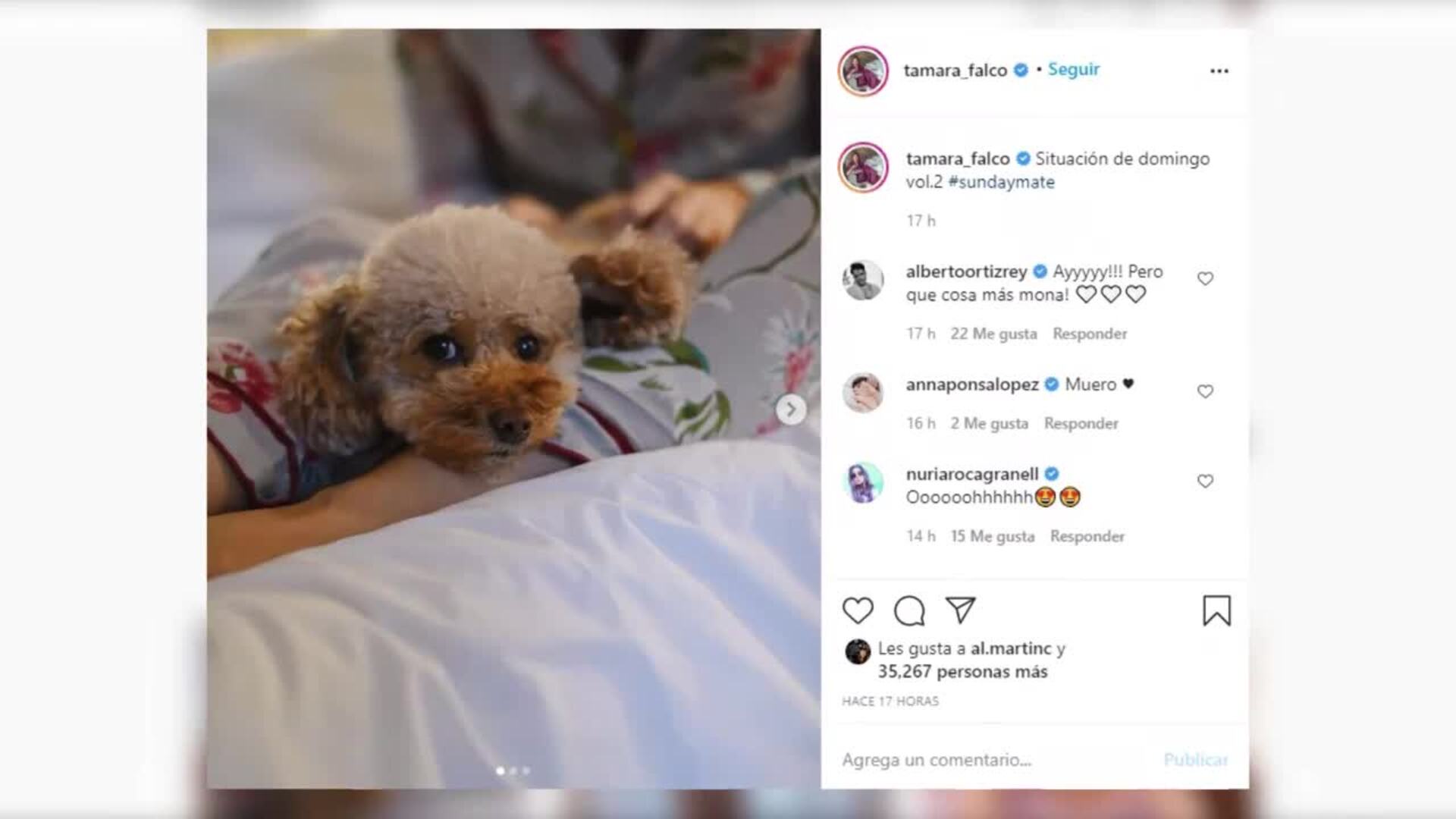 "Mañanas de domingos en casa", así es como Tamara Falcó ha titulado una bonita a sesión de fotos que ha compartido con sus más de 960.000 seguidores para contarles cómo ha sido su fin de semana. La Marquesa de Griñón aparece posando ante la cámara de lo más natural, vestida con un pijama gris de estampado floral que ha causado sensación en las redes sociales. (Fuente: Europa Press/Instagram)