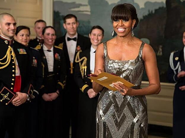 Si en 2013 fue la encargada de nombrar a 'Argo' como Mejor Película en la gala de los Oscar, ¿cómo no iba a tener Michelle Obama el glamour de una estrella de Hollywood? Y eso la Primera Dama se lo tomó de manera literal, porque los acabados metalizados, los 'paillettes' y los bordados joya han sido una constante en sus looks más sofisticados de noche.