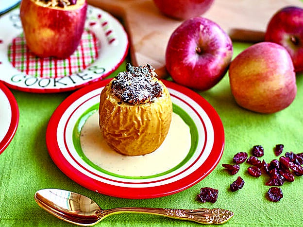 Rellenamos la manzana con la mezcla anterior y colocamos encima un dado de mantequilla.