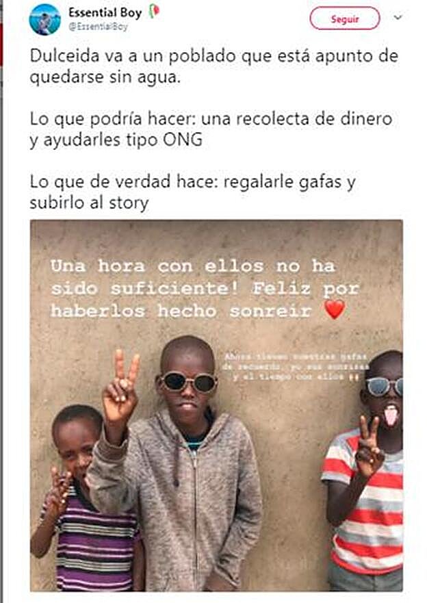 Fue un gesto con toda su buena volutad, pero se ha vuelto en su contra. Sí, otra vez las redes sociales. Y, de nuevo, una vieja conocida como receptora de los dardos: Dulceida . La 'influecer' se ha situado en el 'top' de los 'trending topic' nacionales por hacer un regalo a unos niños africanos... Como lo leen.