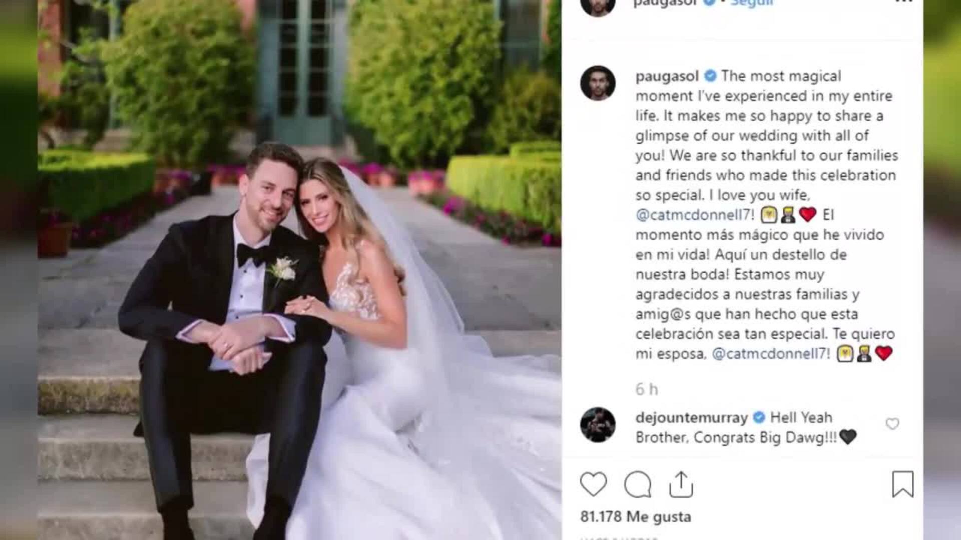 Querían una celebración íntima y privada y, durante unas horas lo han conseguido, Pau Gasol y Catherine McDonnell han desvelado hoy lo que ya era un secreto a voces. La pareja se ha dado el 'sí quiero' en una romántica ceremonia que se celebró el pasado 7 de julio en San Francisco, Estados Unidos.