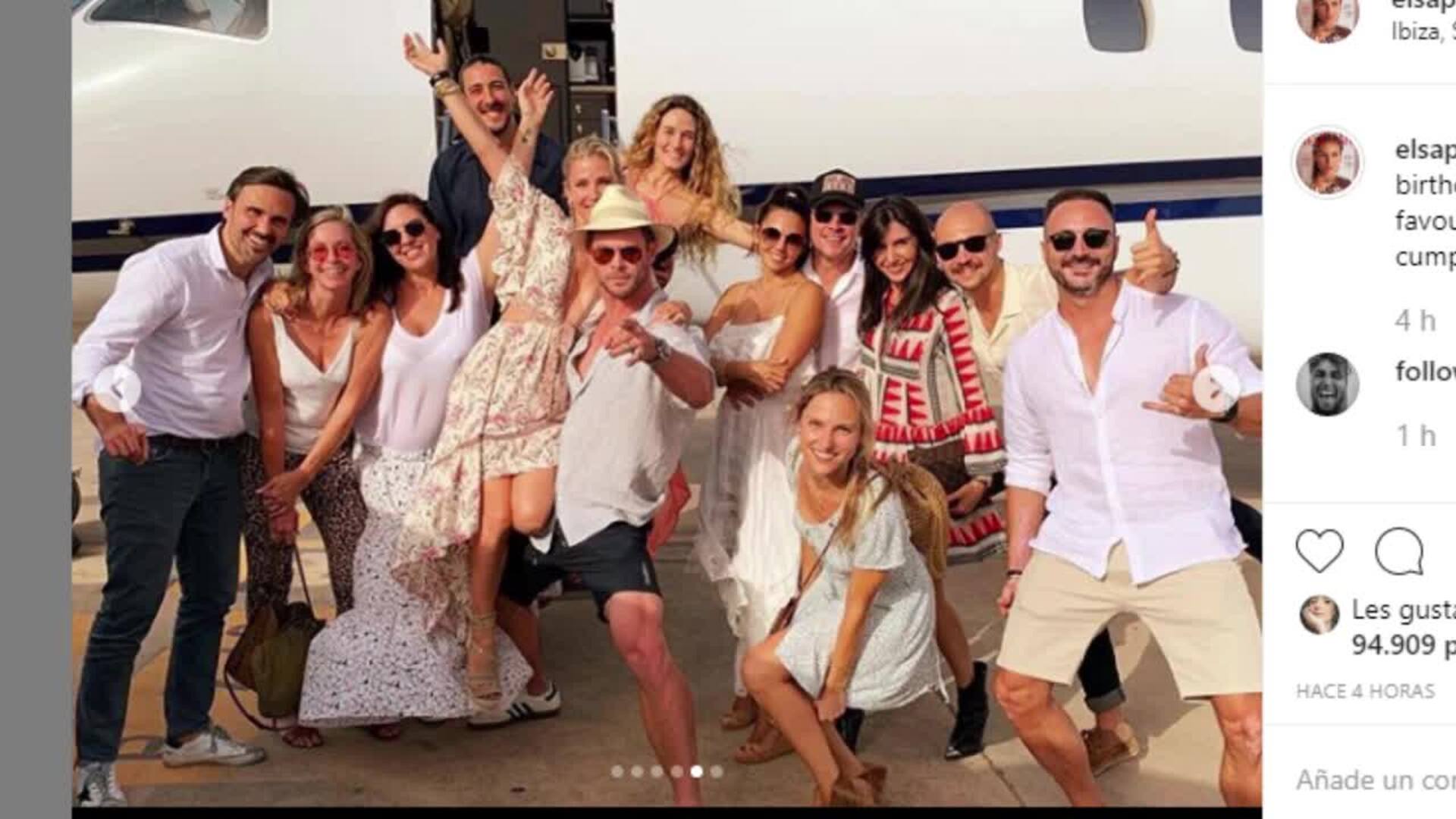 La actriz Elsa Pataky ha querido dejar las playas australianas para viajar a España para darse unas merecidísimas vacaciones en la isla de Ibiza. Pero no ha venido sola ya que ha venido acompañada de su marido, Chris Hemsworth, y algunos amigos entre los que se encuentran el actor Matt Damon o el hijo de Ángel Nieto, Ángel Nieto Jr, más conocido como 'Gelete'. La actriz española, su marido y muchas celebrities se han querido dejar ver por la isla española para celebrar el 43 cumpleaños de Elsa, que será el próximo 18 de julio, pero la actriz lo ha festejado antes rodeada de sus amigos más allegados.