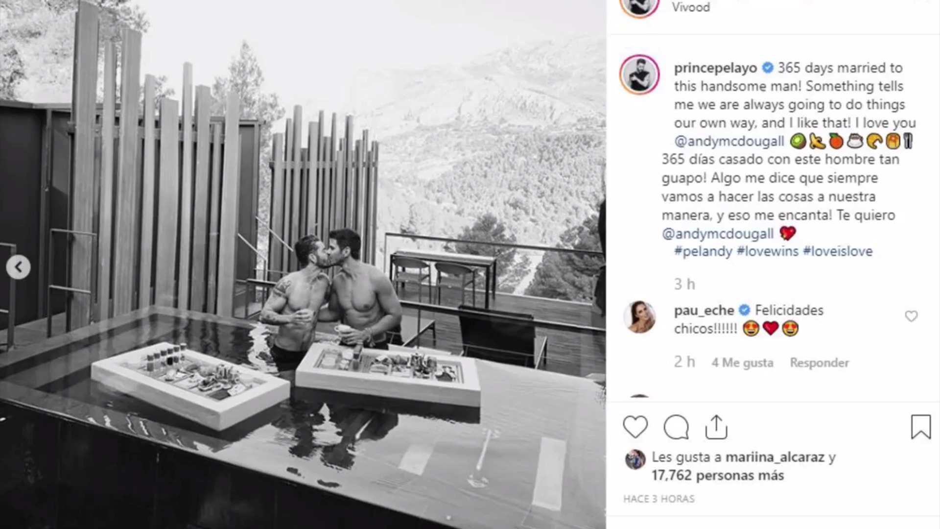 Este 22 de septiembre es una fecha marcada en rojo en el calendario de Pelayo Díaz y Andy Mc Dougall. Y es que justo hace un año la pareja se daba el 'Sí, quiero' en una bonita ceremonia en Madrid. Un evento que congregó a multitud de influencers y que se convirtió en mediático gracias al 'hashtag' #pelandy. Ahora, el estilista y su marido han querido celebrar su primer aniversario de una manera única, con una escapada de fin de semana para ellos solos a un hotel de lujo en las montañas de alicante.