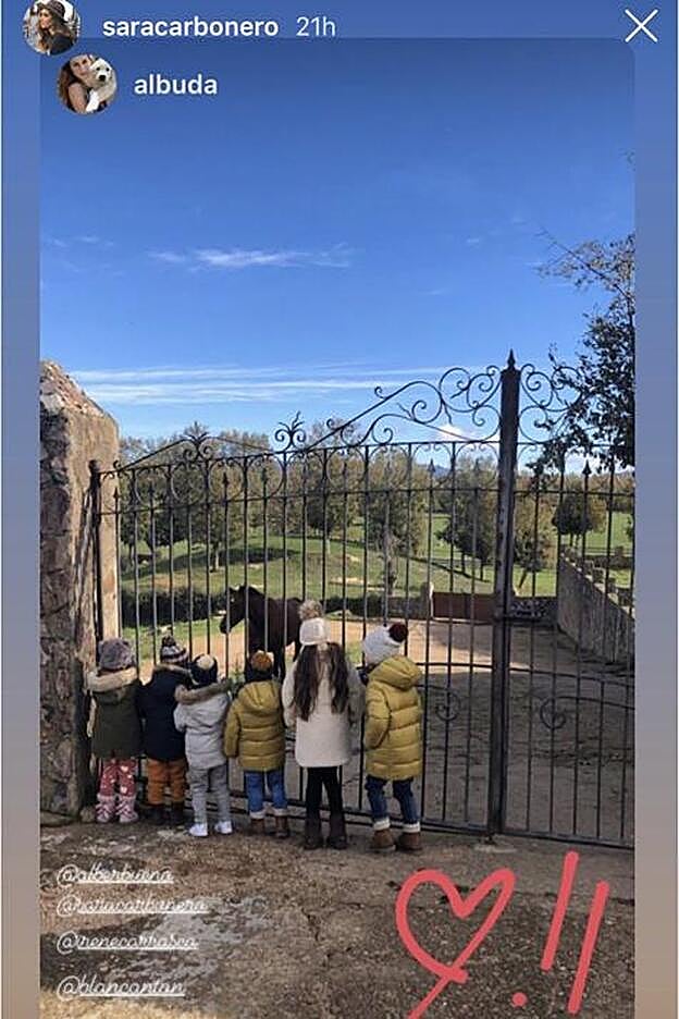 Una instantánea que ha ido acompañada de varias imágenes en Stories en las que podemos ver cómo los más pequeños disfrutan contemplando algunos caballos que se encontraban en la zona. Además de un atardecer que hipnotiza.