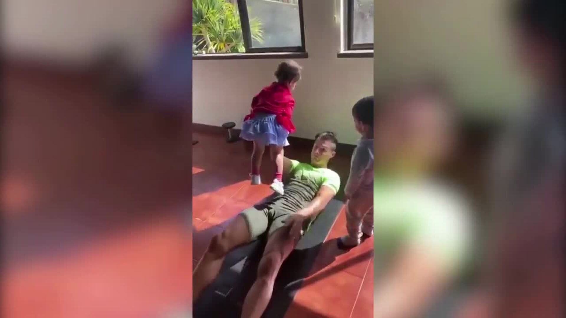 Este domingo, Cristiano Ronaldo celebró una comida en familia para festejar la Pascua, y es que parece que el crack portugués disfruta pasando tiempo con los suyos en la cuarentena. En esta ocasión, el futbolista se disponía a hacer su rutina diaria de ejercicios, cuando sus hijos Mateo y Alana, han hecho su aparición. Estos han ayudado a su padre a hacer abdominales... Y después han sido parte activa del entrenamiento del jugador de la Juventus.