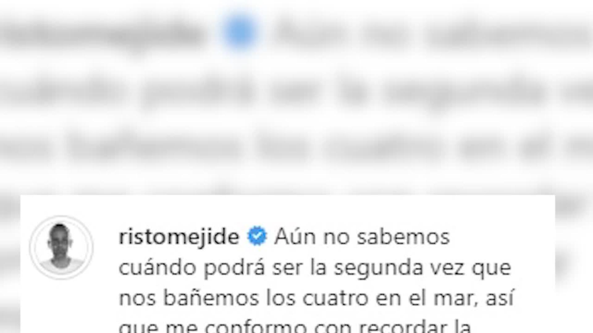 Risto Mejide ha publicado una fotografía bañándose en el mar junto a Laura Escanes y junto a su hijo y ha escrito que "aún no sabe" cuándo será la próxima vez en que se bañen "los cuatro" en el mar, posíblemente refiriéndose también a Roma, su hija en común con Laura Escanes.