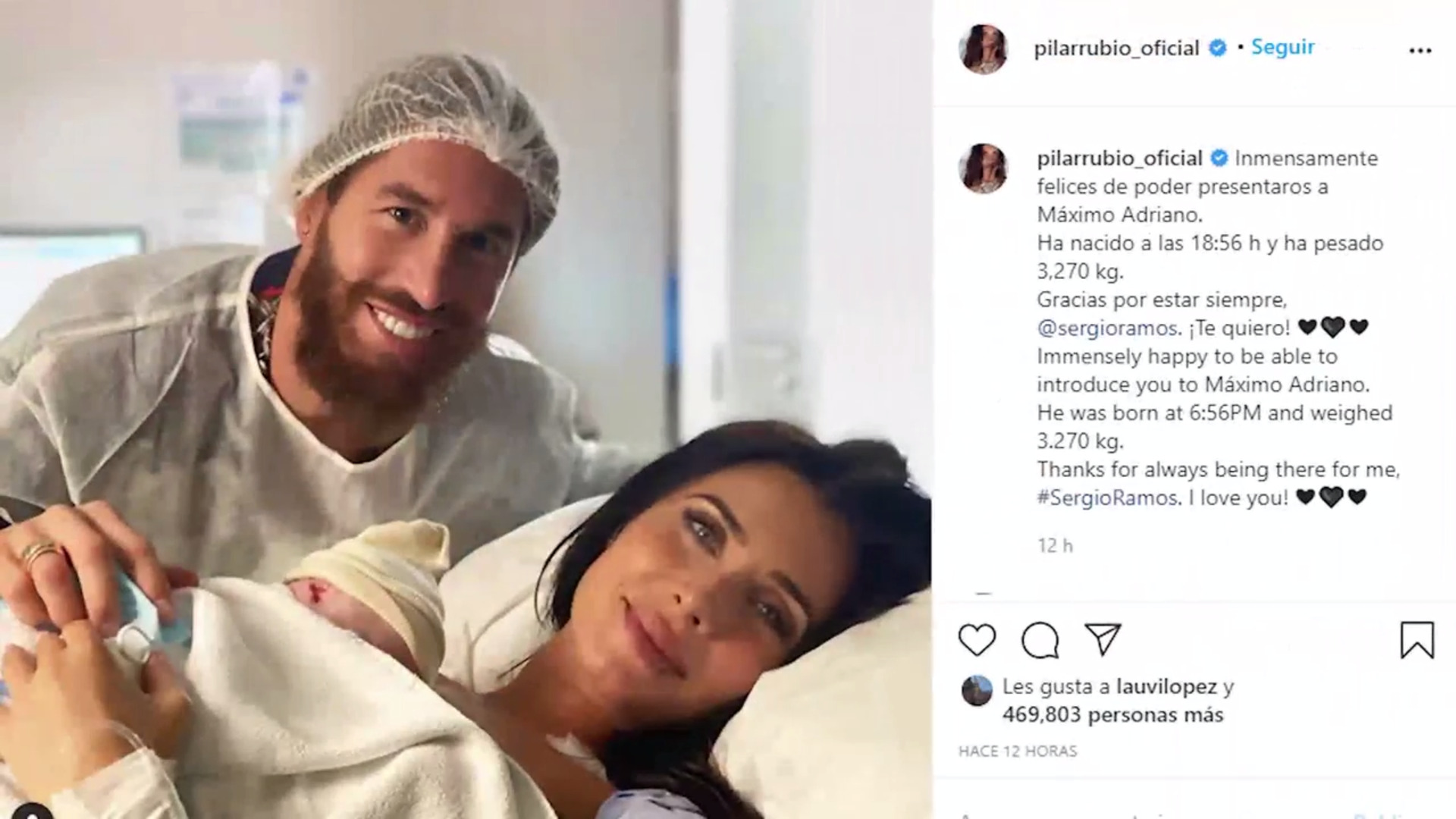 Pilar Rubio y Sergio Ramos se han convertido en padres por cuarta vez. Así lo han anunciado el futbolista y la colaboradora por Instagram con esta tierna fotografía en la que se ve a los felices papás con el nuevo miembro de la familia.(Fuente: EP, Instagram)