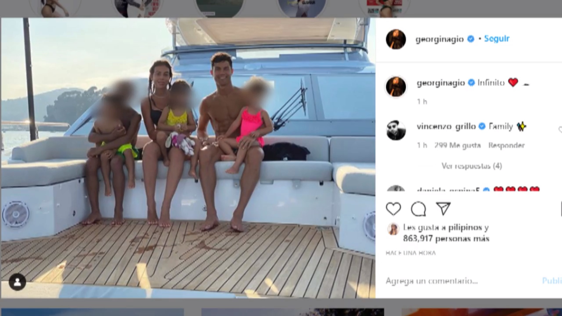 Georgina y Cristiano Ronaldo están disfrutando de unas vacaciones de ensueño. Un espectacular yate es el alojamiento que este año la familia ha elegido para pasar varias semanas de relax, tras todo lo acontecido por la pandemia de la Covid-19. Aunque parece que la privacidad que querían, va y viene por momentos. Con cánticos en italiano y desde el agua, seguidores de la pareja se han acercado a saludar.(Fuente: Instagram, EP, Marca)