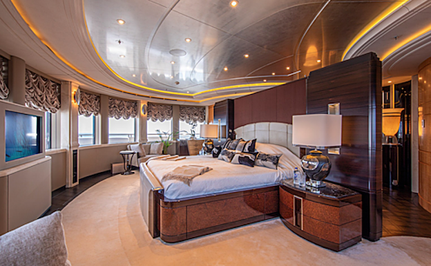 Podemos observar todos estos detalles en la 'suite' principal del yate, que está equipada con una sala de vapor y 'hamma'n, y equipos de fitness Technogym de última generación fabricados en Italia. Después de un duro entrenamiento, muy cerca se encuentra una sala de masajes y un salón de belleza con techos de estrellas.