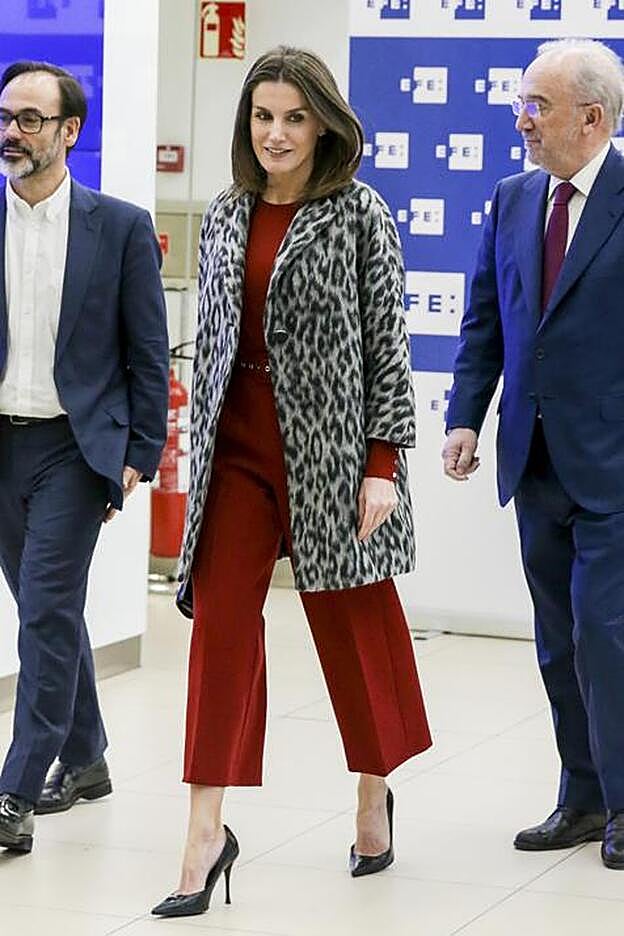 Y es que si el rojo es el color favorito de nuestra Reina, el leopardo es el estampado estrella de la temporada, de ahí que no nos haya costado ningún trabajo encontrar un abrigo similar al de doña Letizia en las rebajas de Zara... ¡por menos de 30 euros!