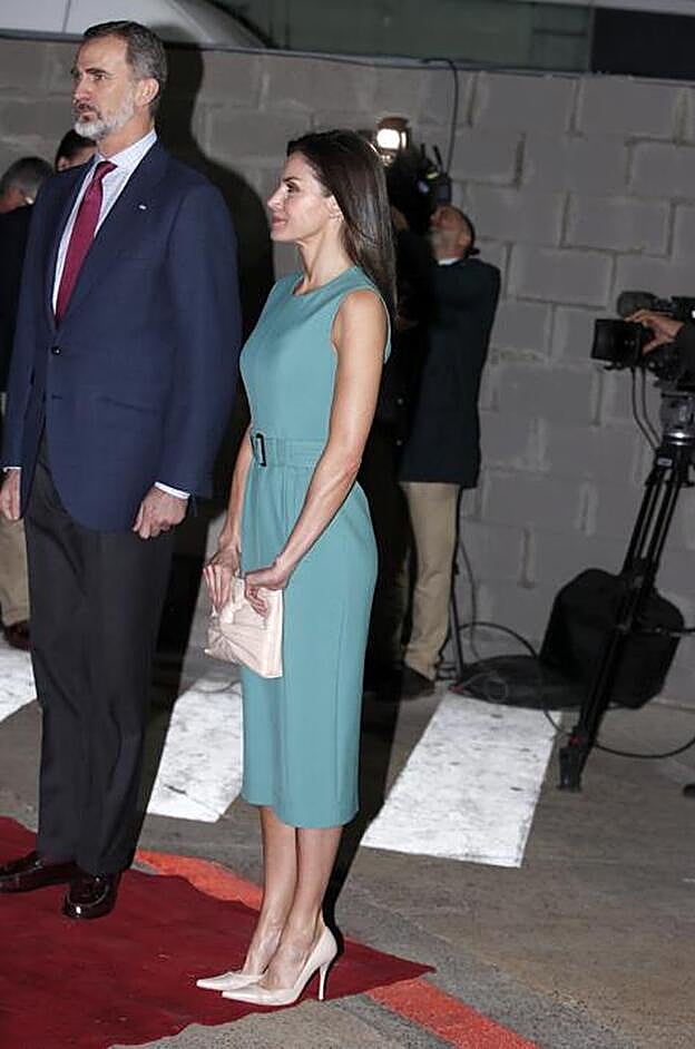 El vestido nuevo de la Reina, además de ser de uno de los colores tendencia de la temporada (no hay más que ver cómo ha triunfado entre las 'influencers' en mil y una prendas), sienta como un guante y hace tipazo gracias a su silueta lápiz, su cuerpo ajustado, su cintura bien marcada y su largo midi que, además, se veía potenciado por sus salones de empeine abierto en beige, que hacían que sus piernas parecieran aún más largas y estilizadas.