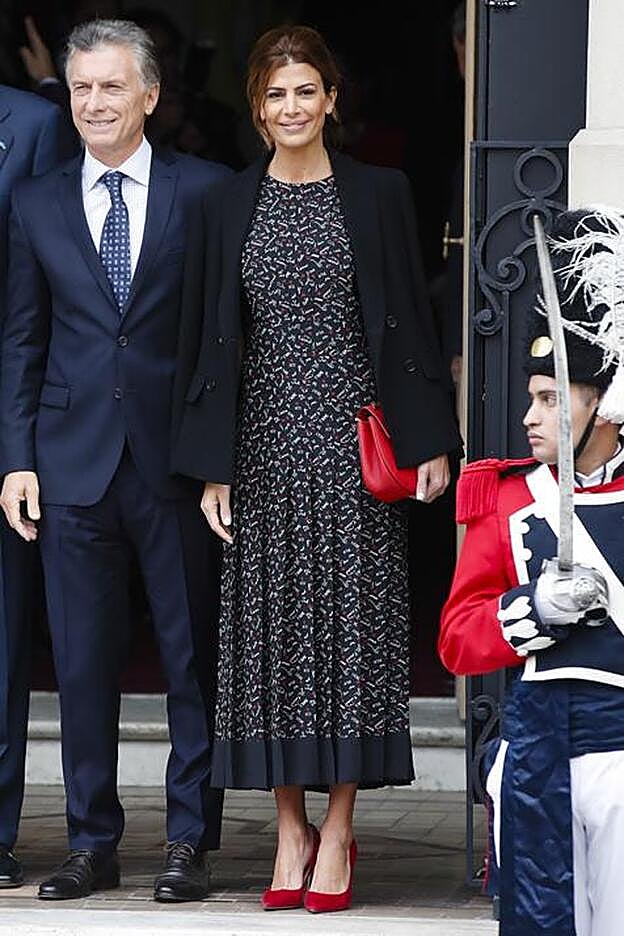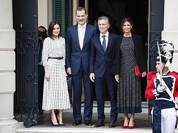 No sabemos si ha sido casualidad o si es que Juliana Awada se ha inspirado para esta cita en el estilo de Letizia, pero lo cierto es que después de cuatro looks muy diferentes entre una y otra en las últimas 48 horas, la Primera Dama ha elegido un vestido muy similar al de nuestra Reina (que, recordemos, estrenó hace varios meses) aunque con los colores invertidos, y vuelven así a coincidir con sus estilismos como ya ocurrió durante su encuentro en Madrid en 2017.