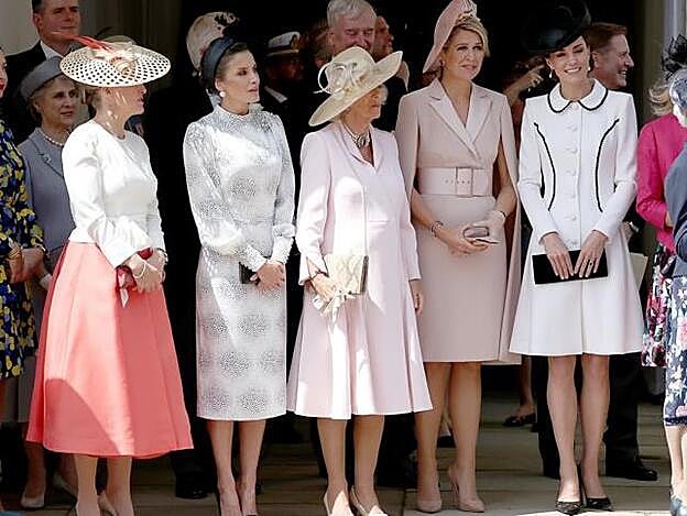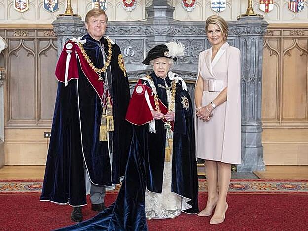 A dos días de cumplir sus cinco años de reinado, don Felipe ha recibido de manos de Isabel II, en el Castillo de Windsor, la máxima distinción que concede la monarquía británica: la de Caballero de la Muy Noble Orden de la Jarretera, una condecoración que data del siglo XIV y que creó el Rey Eduardo III inspirado en las leyendas del Rey Arturo y sus Caballeros de la Mesa Redonda. El Rey de España y Guillermo de Holanda han entrado así hoy a formar parte de este selecto grupo de damas y caballeros elegidos directamente por la Reina de Inglaterra, Soberana de la Jarretera. Doña Letizia y Máxima de Holanda, por supuesto, no ha querido faltar a esta cita histórica, y sus looks nos han dejado sin palabras...