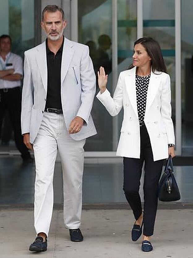 Conjuntados y muy sonrientes, los reyes sorprendieron a partes iguales con sus elecciones de estilo: la reina, por la prenda en cuestión, pero el rey por su estilo jovial con tonos claros a los que no nos tiene para nada acostumbrados. Además, cambió la camisa por el polo y lució también mocasines.