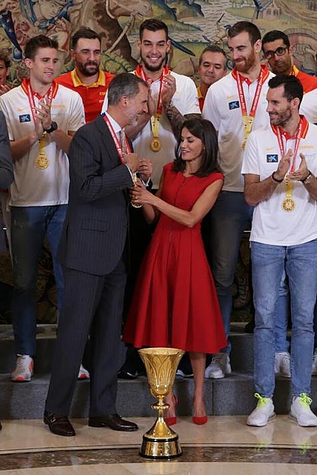 La Reina no ha sorprendido con su apuesta segura al rojo, ya que suele hacer este tipo de guiños de moda a los deportistas españoles cuando celebra con ellos algún triunfo. Eso sí, se esperaba que la Princesa Leonor y la Infanta Leonor acompañaran a los Reyes en la recepción a los Campeones del Mundo de Baloncesto, como ocurrió cuando selección absoluta de fútbol ganó la Eurocopa de 2012.