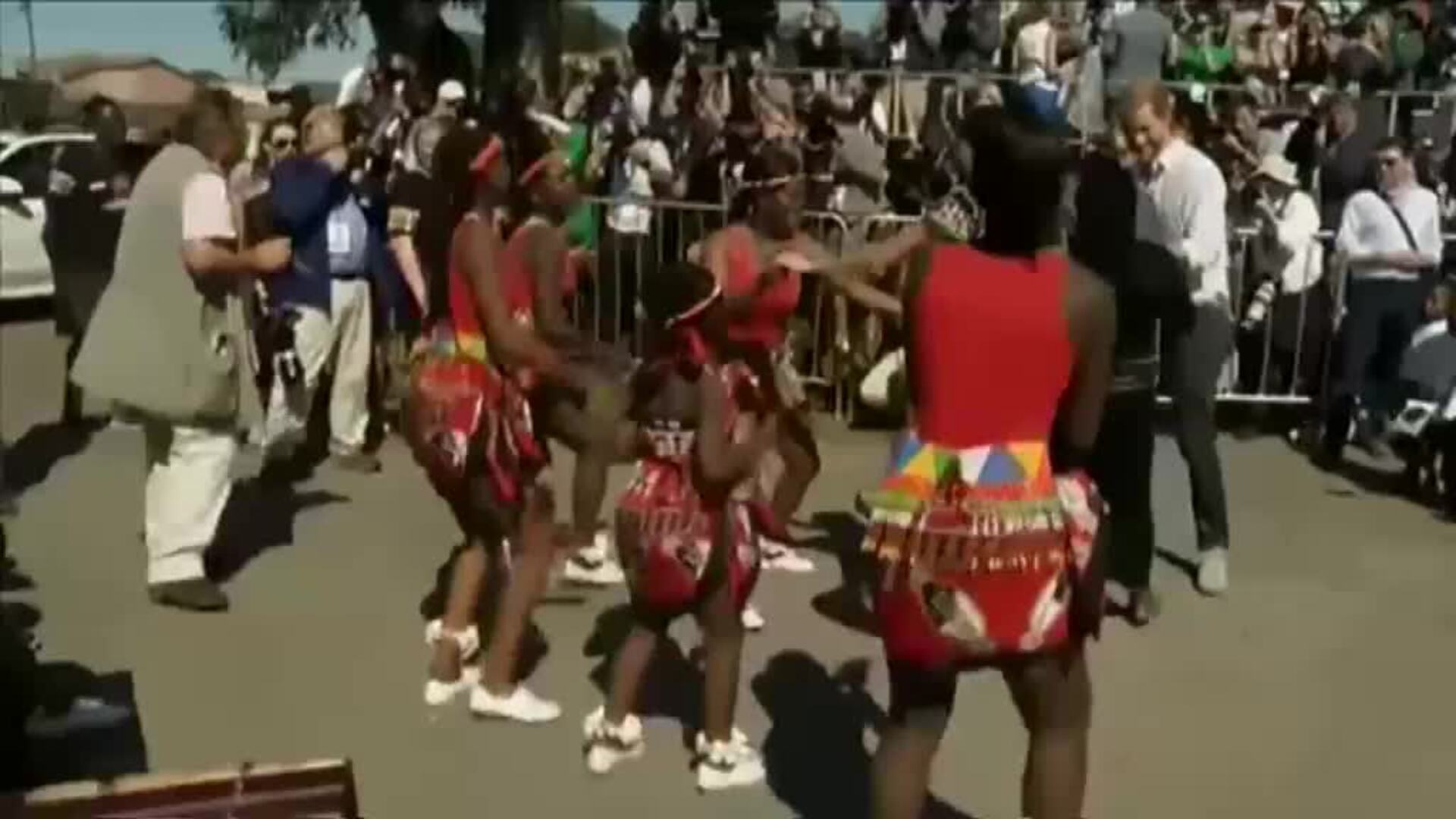 Meghan Markle y el príncipe Harry han aterrizado en Ciudad del Cabo con su hijo Archie para iniciar una gira de nueve días por el continente africano. Esto supone el debut internacional del hijo de los duques de Sussex. Durante la ceremonia de bienvenida les han recibido con el baile típico de la zona. Los más pequeños han animado a los duques para que salieran a bailar con ellos.-Redacción-
