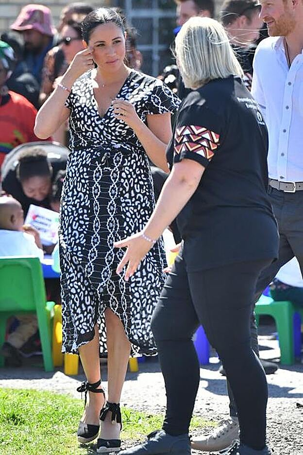 Eso sí, los Duques de Sussex no han llevado consigo al pequeño Archie en su primer acto oficial, así que el centro de atención se ha desviado, como casi siempre, hacia el look elegido por Meghan Markle, esta vez para visitar la localidad de Nyanga.