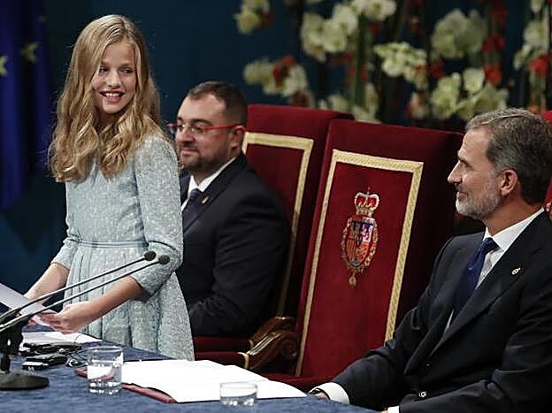 "Hoy es un día muy importante en mi vida que he esperado con mucha ilusión. Desde muy pequeña he visto el cariño y la emoción con que mis padres, Sus Majestades los Reyes, vienen cada año al Principado para presidir esta ceremonia y vivir todo lo que sucede en esta tierra durante los días de nuestros premios. Esto ya es motivo suficiente para que hoy me sienta muy feliz por estar aquí", ha comenzado la Princesa Leonor, que ha pronunciado un emotivo discurso en el que se ha referido lo mucho que sus padres les han enseñado a ella y a su hermana, la Infanta Sofía, a amar a los asturianos y a Asturias, la tierra de su madre y del título que ostenta con orgullo. "En mi casa, las palabras España y Asturias siempre están unidad con la misma fuerzas que las ha unido la historia".