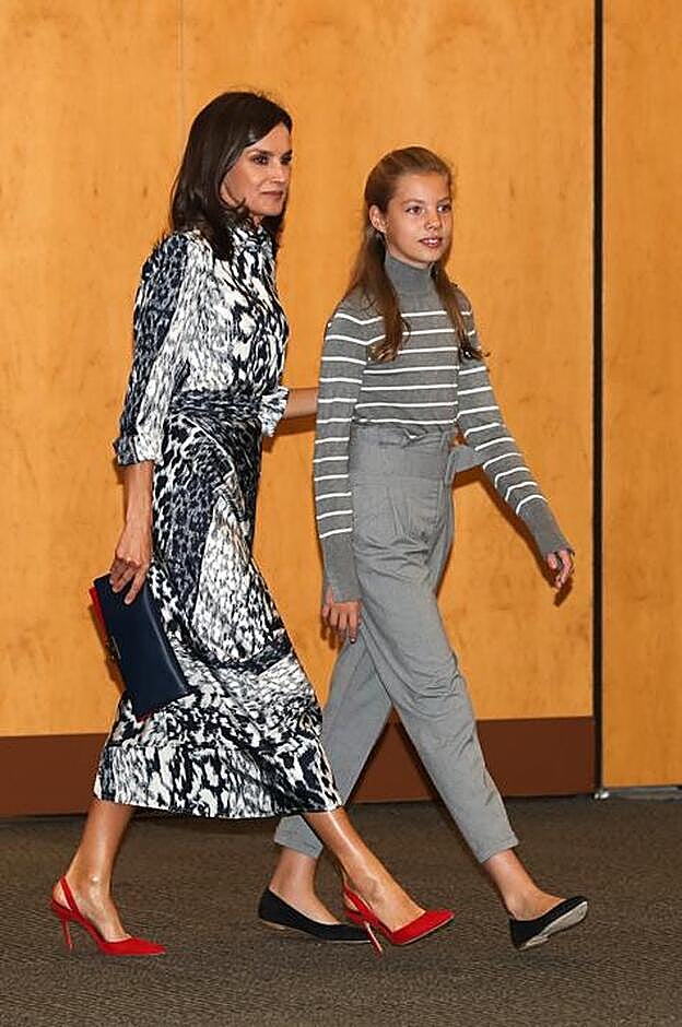 Las hijas de los Reyes han heredado el estilo de doña Letizia, sus looks están cuidado al detalle e, incluso, hemos descubierto que se cambian ropa con su madre. Y aunque hay muchas voces críticas que las acusan de ir demasiado infantiles para su edad, lo cierto es que tanto una como la otra están experimentando una notable evolución 'pre adolescente' desde el verano hasta ahora, peinado incluido. A sus 12 años y medio, ha sido la Infanta Sofía la que, esta vez, ha sorprendido en Barcelona con una prenda de plena tendencia que, además, es de una firma española 'low cost'.